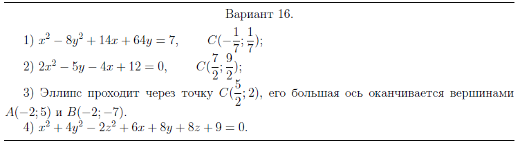 ДЗ 2: Кривые и поверхности второго порядка вариант 16