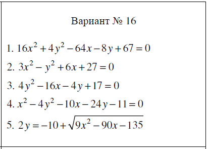 ДЗ 2.1: Кривые второго порядка вариант 16