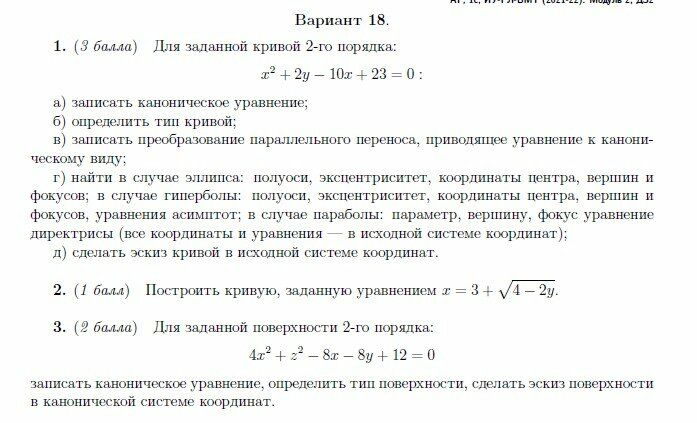 ДЗ 2: Кривые и поверхности второго порядка вариант 18