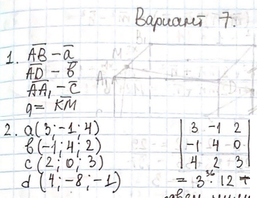 ДЗ 1: Векторная алгебра и аналитическая геометрия вариант 7