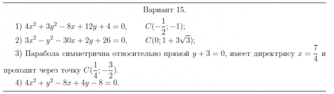 ДЗ 2: Кривые и поверхности второго порядка вариант 15