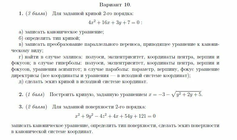 ДЗ 2: Кривые и поверхности второго порядка вариант 10