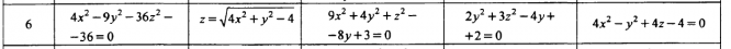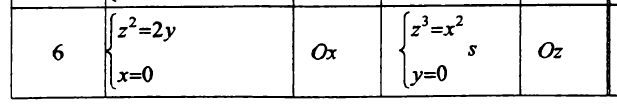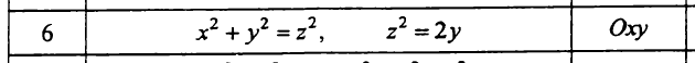 • Задача 4. Заданы уравнения двух поверхностей. Построить обе поверхности и линию их пересечения. Написать уравнения линии пересечения поверхностей и уравнение ее проекции на заданную плоскость (табл. 6). Построить проекцию линии пересечения заданных поверхностей на заданную плоскость.