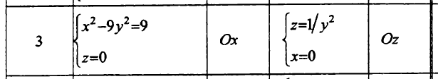 • Задача 1. Написать уравнение поверхности, полученной вращением заданной кривой вокруг заданной оси (табл. 3). Сделать рисунок поверхности.