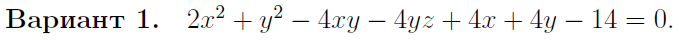 • Задача 4. Уравнение поверхности второго порядка на плоскости Oxyz привести к каноническому виду, указав: