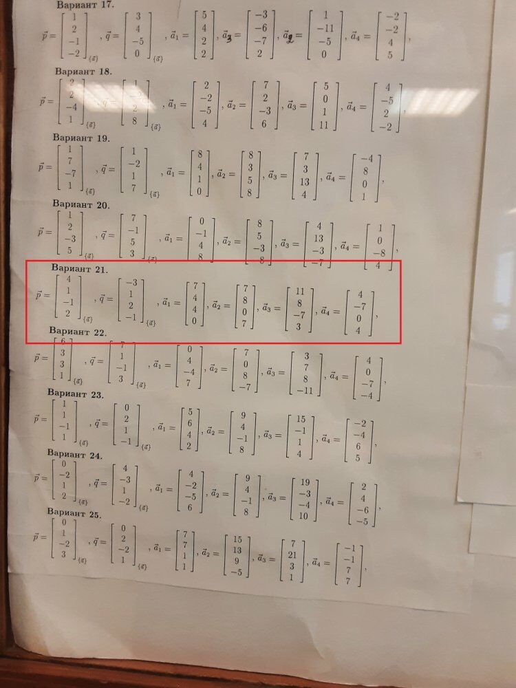 ДЗ 1.1: Линейная алгебра вариант 21