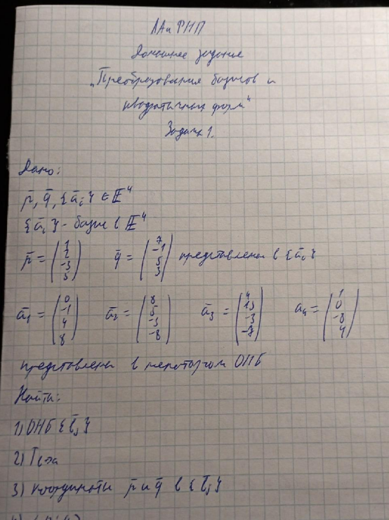 Первый типовой расчет по линейной алгебре, 3 задачи (все подпункты), зачтено на максимальный бал.