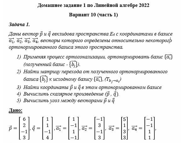 Вариант 10 - ДЗ №1 - Часть 1 - "Линейная алгебра" - 5 Задач