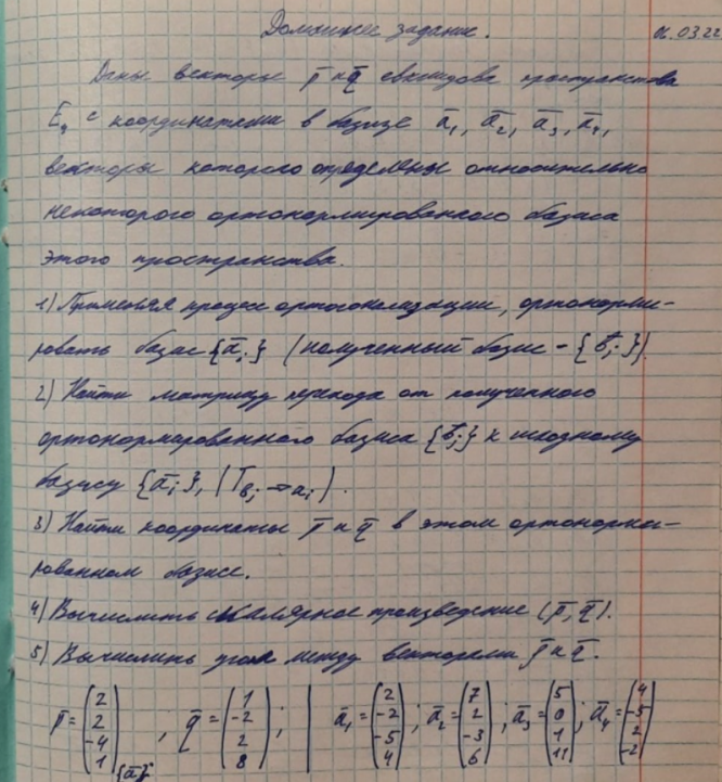 Первый типовой расчет по линейной алгебре, 5 задач, зачтено на максимальный балл.
