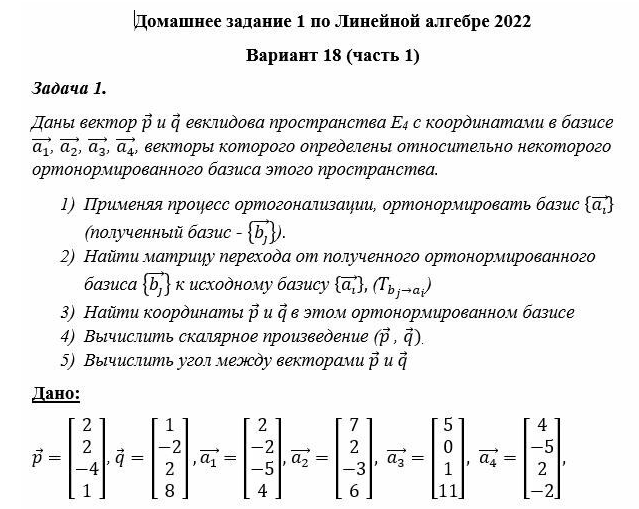 Вариант 18 - ДЗ №1 - Часть 1 - "Линейная алгебра" - 5 Задач