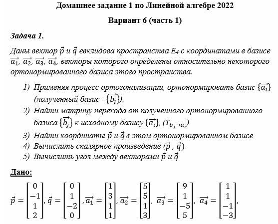 Вариант 6 - ДЗ №1 - Часть 1 - "Линейная алгебра" - 5 Задач