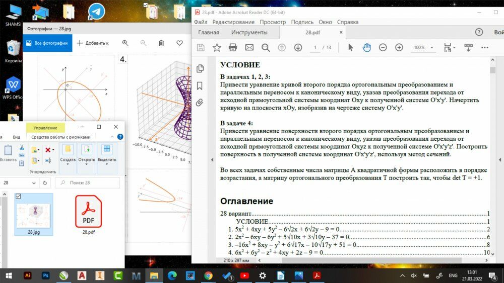 ДЗ 1.2: Кривые и поверхности второго порядка вариант 28