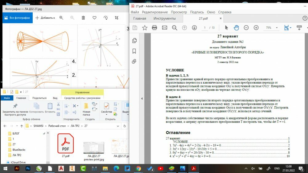 ДЗ 1.2: Кривые и поверхности второго порядка вариант 27