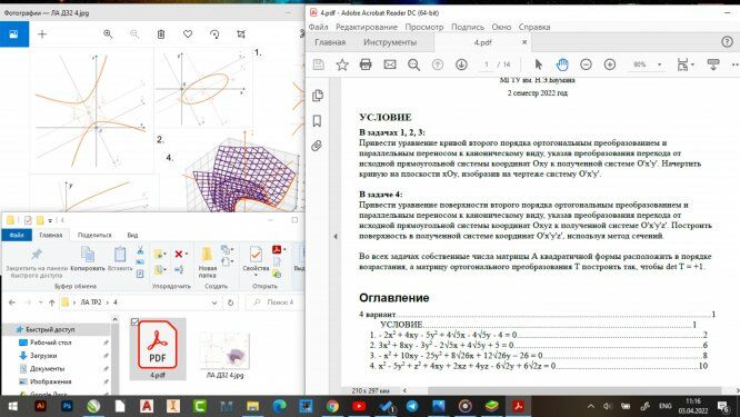 ДЗ 1.2: Кривые и поверхности второго порядка вариант 4