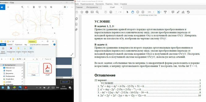 ДЗ 1.2: Кривые и поверхности второго порядка вариант 22