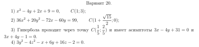 ДЗ 2: Кривые и поверхности второго порядка вариант 20