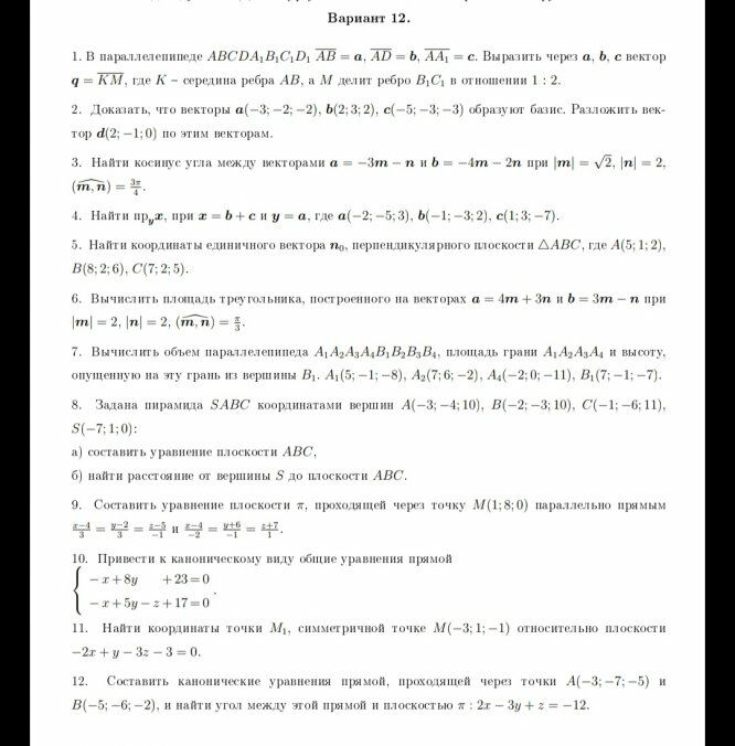 ДЗ 1: Векторная алгебра и аналитическая геометрия вариант 16