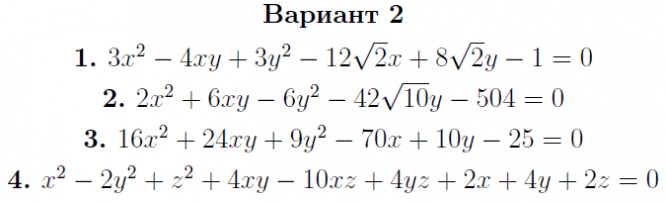 ДЗ 1.2: Кривые и поверхности второго порядка вариант 2