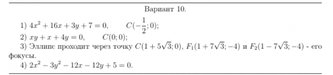 ДЗ 2: Кривые и поверхности второго порядка вариант 10