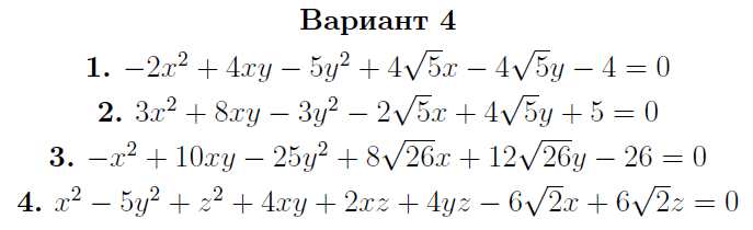 ДЗ 1.2: Кривые и поверхности второго порядка вариант 4