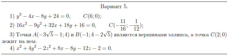 ДЗ 2: Кривые и поверхности второго порядка вариант 5