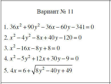 ДЗ 2.1: Кривые второго порядка вариант 11