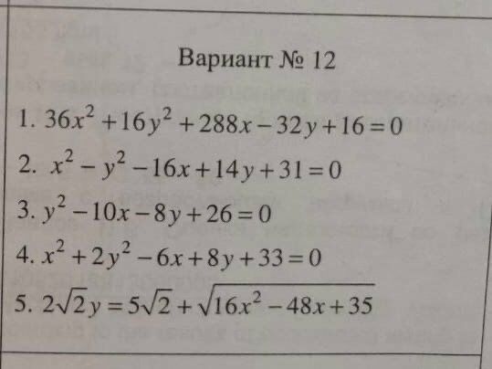 ДЗ 2.1: Кривые второго порядка вариант 12