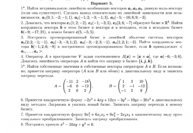 ДЗ 1: Линейная алгебра вариант 5