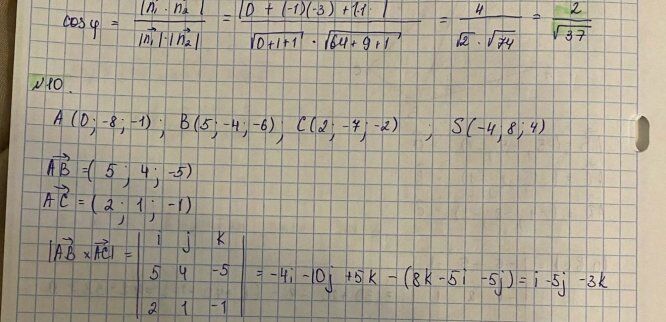 Вариант 16 - ДЗ №1 - Векторная алгебра и аналитическая геометрия (Задача 1=>10)
