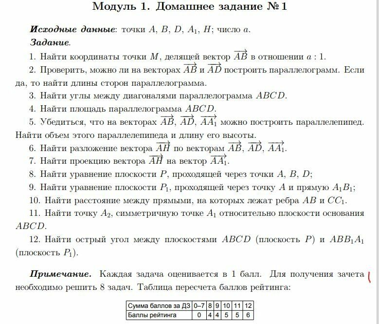 ДЗ 1: Векторная алгебра и аналитическая геометрия вариант 17
