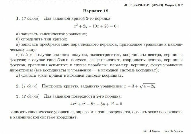 Вариант 18 - ДЗ №2 - Кривые и поверхности второго порядка - ИУ,РЛ,БМТ,ФН12