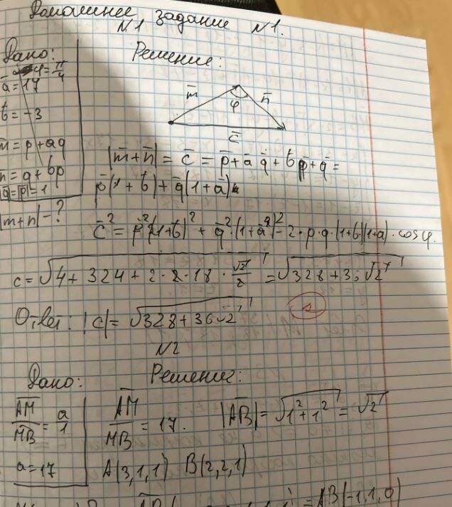 ДЗ 1: Векторная алгебра и аналитическая геометрия вариант 18