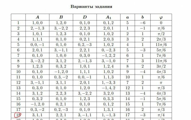 Вариант 18 - ДЗ №1 - Векторная алгебра и аналитическая геометрия - СМ,ФН,РК4,ФН2