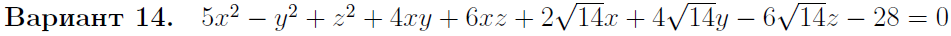 • Задача 4. Уравнение поверхности второго порядка на плоскости Oxyz привести к каноническому виду, указав: