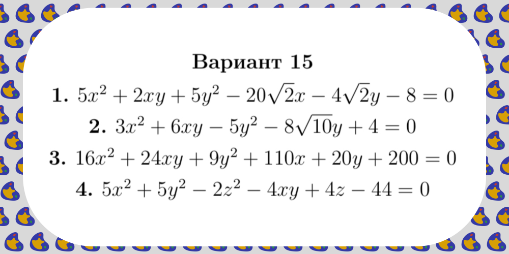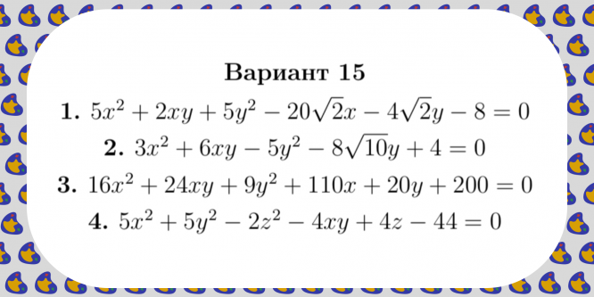 ДЗ 1.2: Кривые и поверхности второго порядка вариант 15