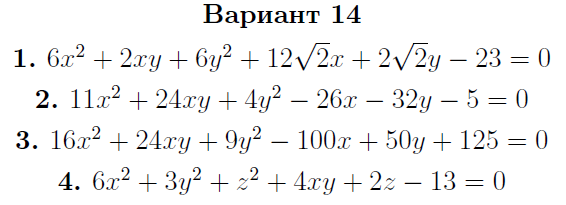 ДЗ 1.2: Кривые и поверхности второго порядка вариант 14