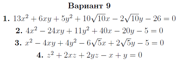 ДЗ 1.2: Кривые и поверхности второго порядка вариант 9