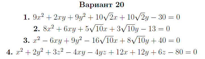 ДЗ 1.2: Кривые и поверхности второго порядка вариант 20
