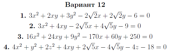 ДЗ 1.2: Кривые и поверхности второго порядка вариант 12