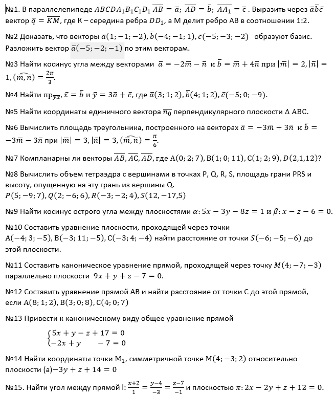 ДЗ 1: Векторная алгебра и аналитическая геометрия вариант 1