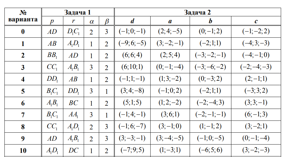 ДЗ 1: Векторная алгебра и аналитическая геометрия вариант 10