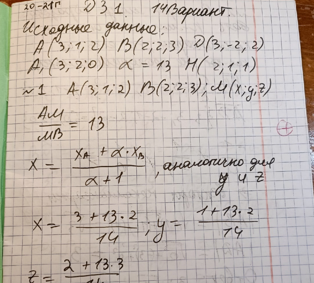 ДЗ 1: Векторная алгебра и аналитическая геометрия вариант 14