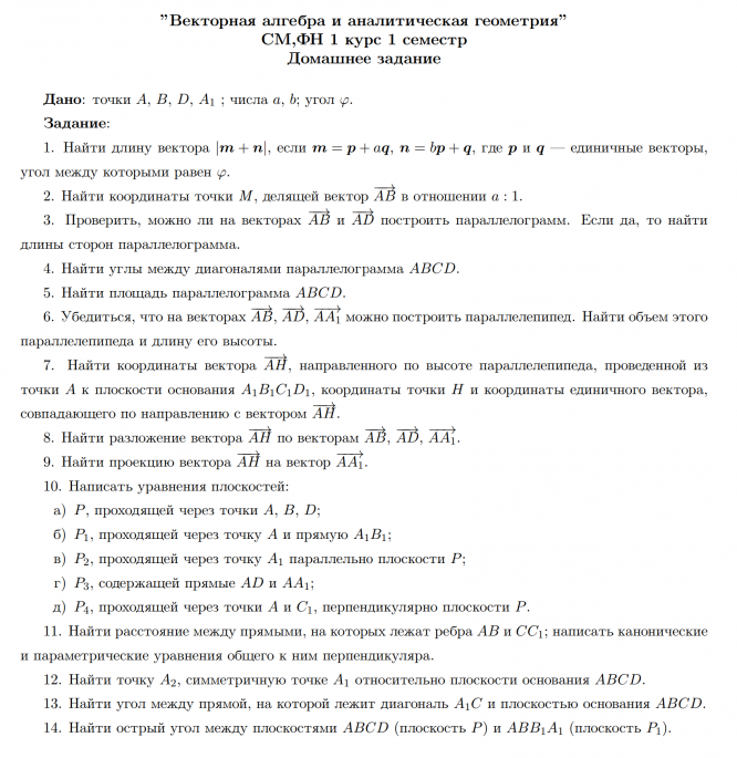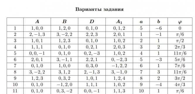 ДЗ 1: Векторная алгебра и аналитическая геометрия вариант 11