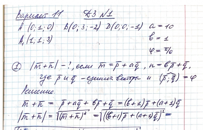 Вариант 11 - ДЗ №1 - Векторная алгебра и аналитическая геометрия - СМ (часть 1 - Задача 1=>9)