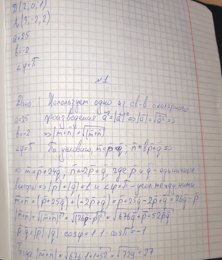ДЗ 1: Векторная алгебра и аналитическая геометрия вариант 26