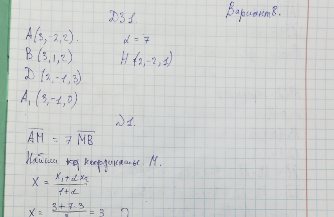 ДЗ 1: Векторная алгебра и аналитическая геометрия вариант 8