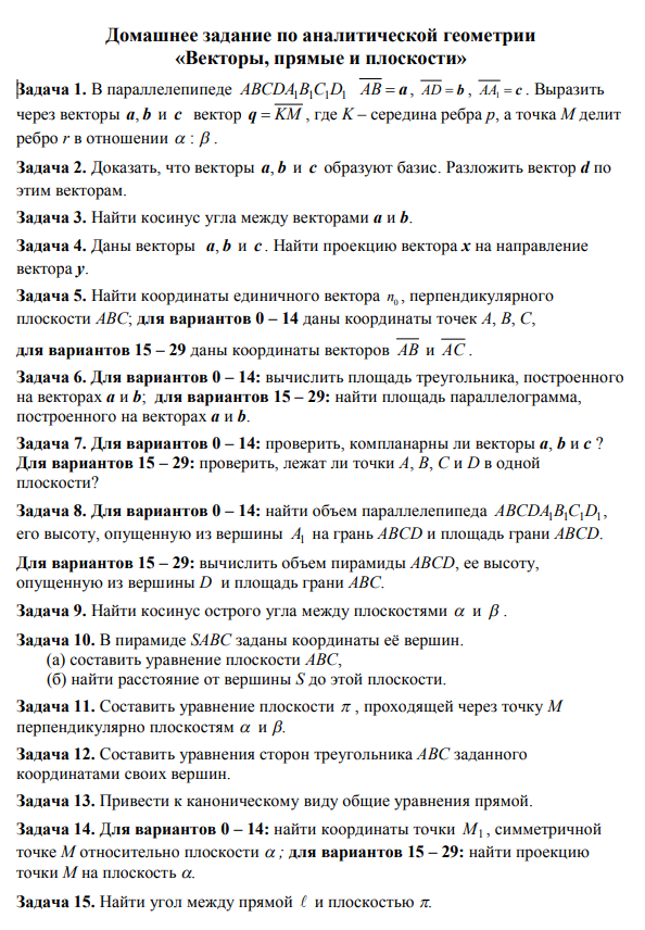 ДЗ 1: Векторная алгебра и аналитическая геометрия вариант 2