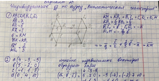ДЗ 1: Векторная алгебра и аналитическая геометрия вариант 25