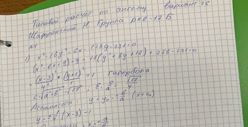 ДЗ 2.1: Кривые второго порядка вариант 26