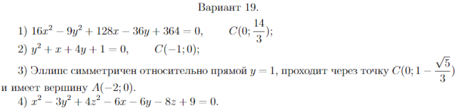 Вариант 19 - ДЗ №2 "Кривые и поверхности второго порядка"